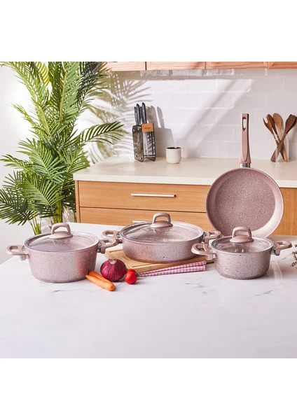 Emsan Premium-S Pro Gold Pink 7 Parça Granit Tencere Seti